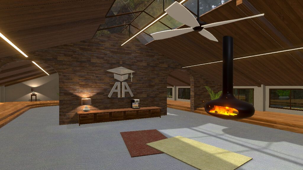 Einfache Interaktionen mit der virtuellen Welt können mithilfe der vorhandenen Kaffeemaschine erprobt werden. In späteren Updates wird die Hangout-Zone noch um weitere Funktionen erweitert, um das Erlebnis noch interaktiver zu gestalten.