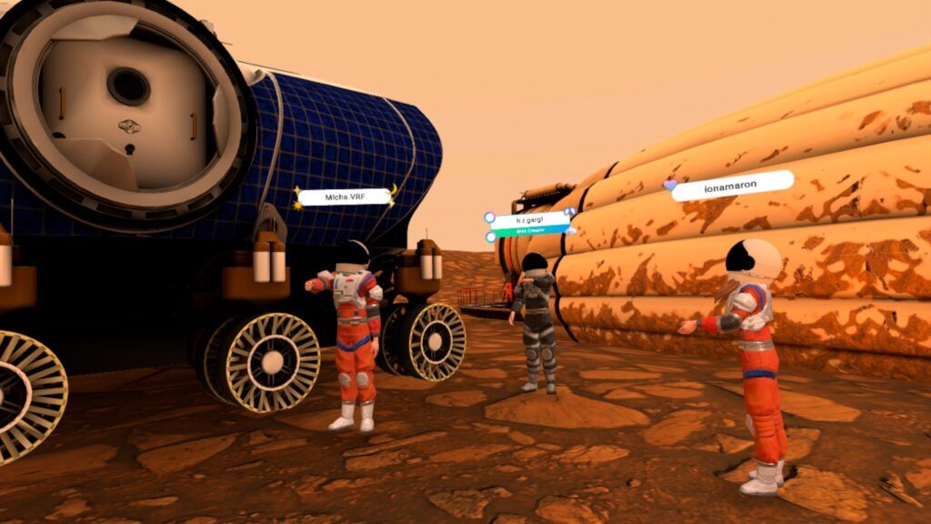 Diese virtuelle Welt ist eine Neuauflage der Marswelt auf der abgesschalteten Altspace-Plattform mit heutigen Mitteln in Horizon Worlds. Hier kann man im Astronautenanzug den Mars erkunden und mehr zur Vergangenheit, Gegenwart und Zukunft der Erforschung des roten Planeten erleben. Die Welt kann bequem via VR-Headset, PC, Tablet oder Smartphone betreten werden.